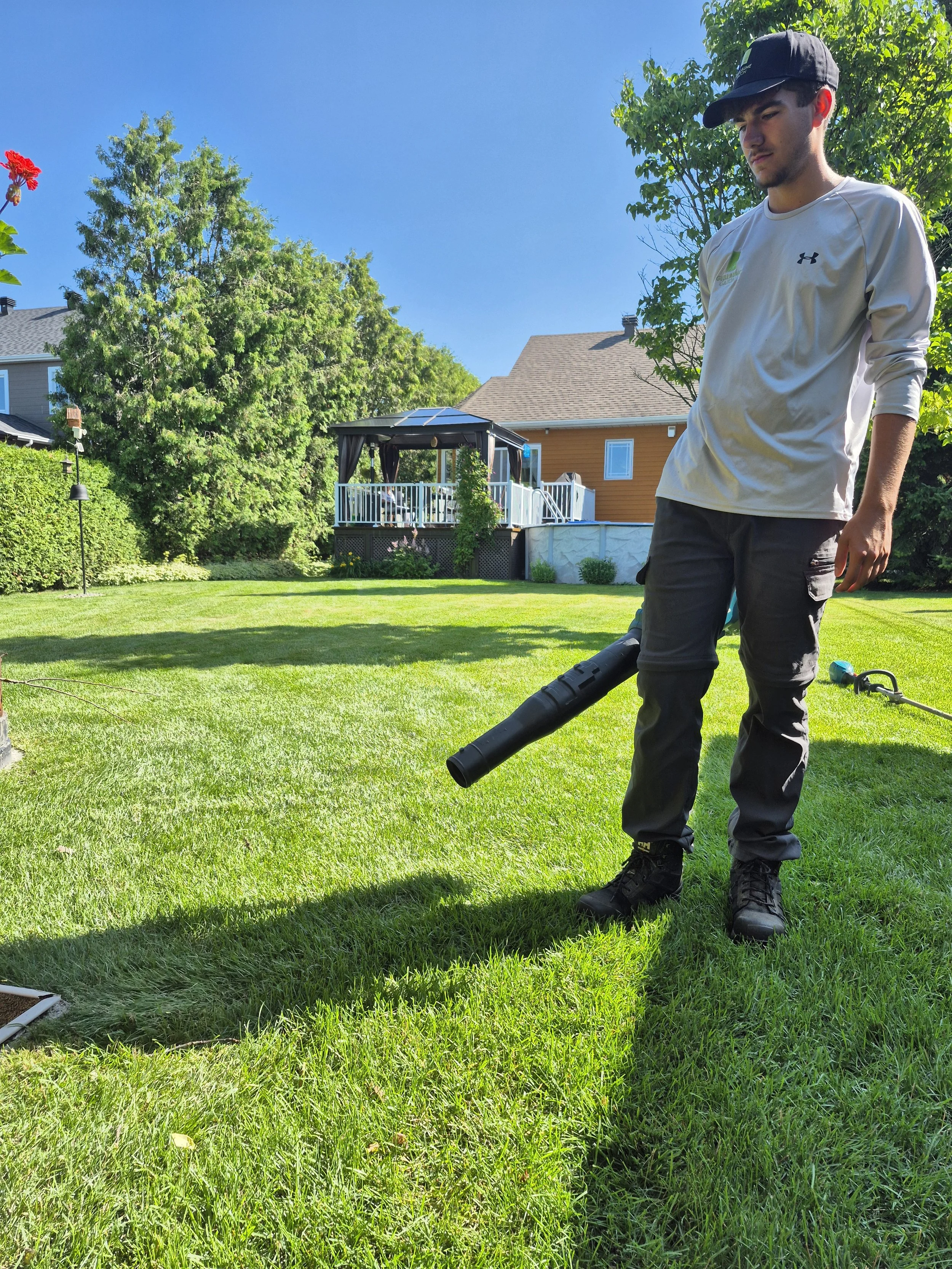 Entretien paysager à Otterburn Park : taille de haies, ramassage de feuilles, ouverture et fermeture de terrain, entretien de plates-bandes, balais mécanique et robots tondeuses.